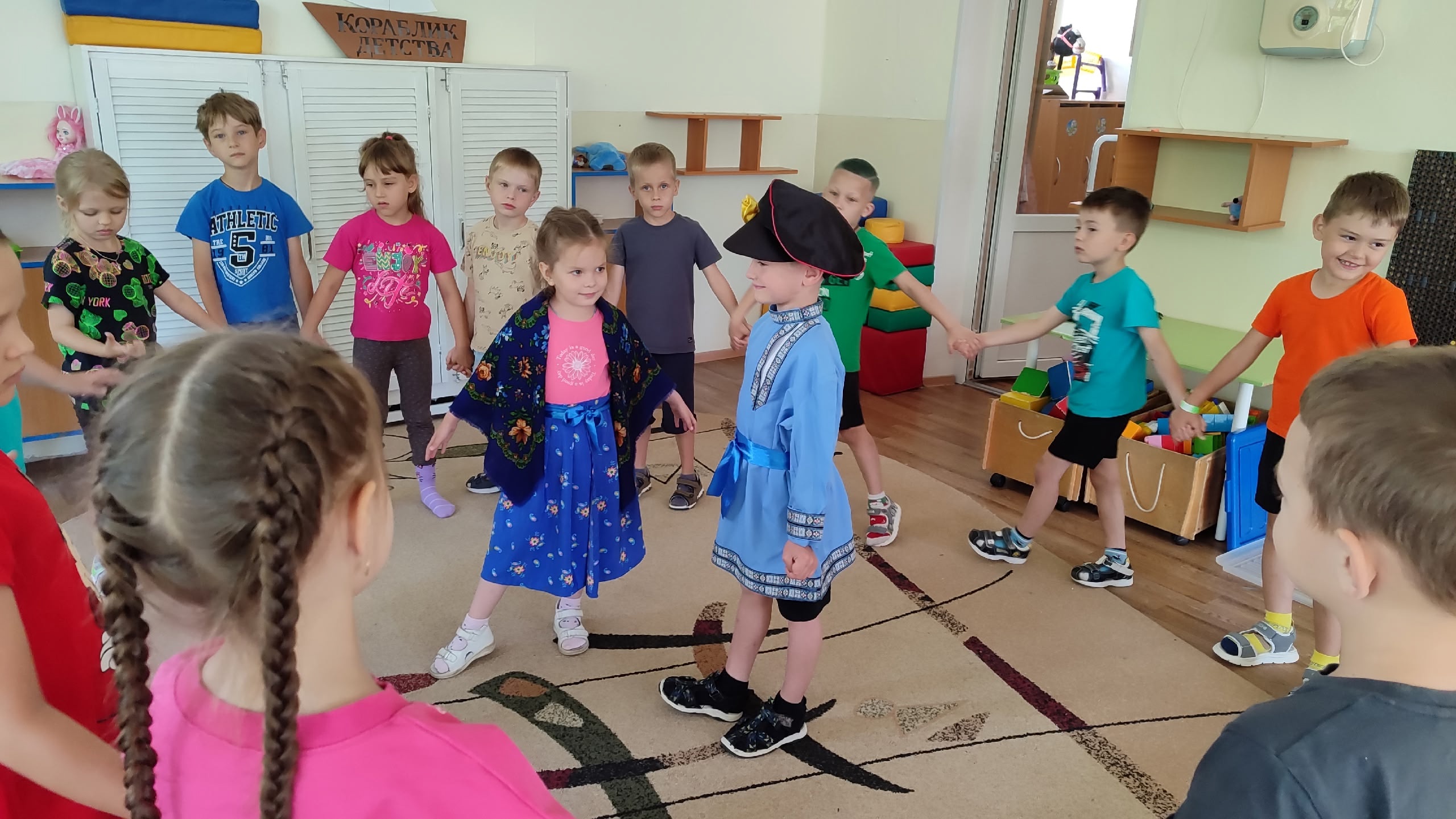 Дети старшей группы узнали историю Петра и Февронии Муромских, что принято дарить в семье друг другу, символы этого дня, играли в народные театрализованные игры: