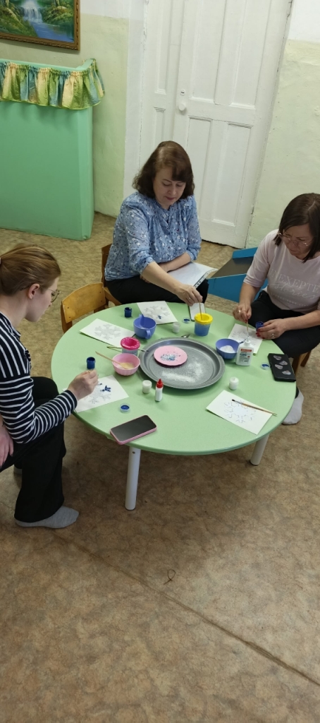 Теперь, когда наступила зима и на земле много снега, воспитатели группы «Солнышко»: Огнёва Д.В и Шаравьёва В.А. поделились с педагогами забавным способом рисования — рисование солью. Провели увлекательный мастер — класс, а рисовали педагоги — снежинку.