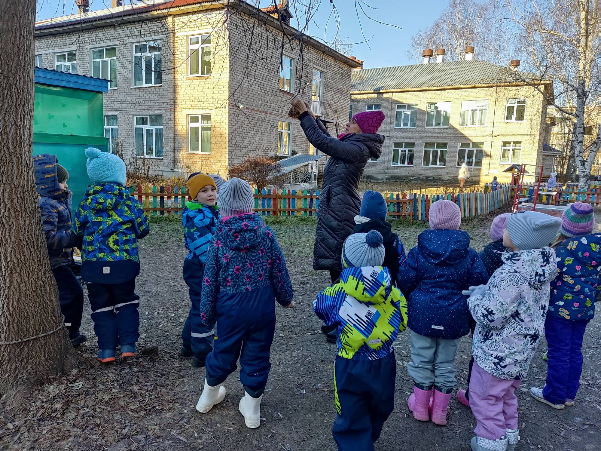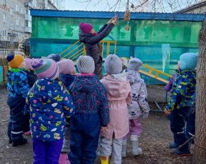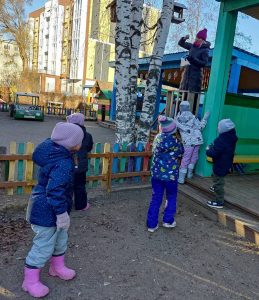 Готовые ЭКО-кормушки ребята во время прогулки развесили на территории детского сада. Эти простые, но интересные кормушки помогут нашим пернатым друзьям во время холодов.