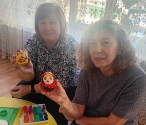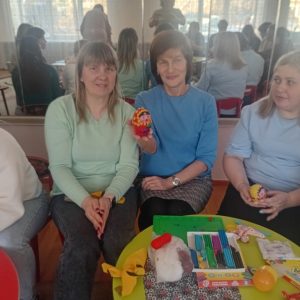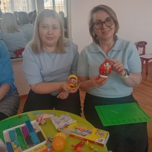 Удивительный мир русской народной культуры по созданию тряпичных игрушек и матрёшек открыли педагоги-мастера своего дела. Воспитателями Хахалкиной М.В. и Епифановой Т.С. был организован мастер-класс по изготовлению тряпичной куклы «Птичка», воспитателями Ермаковой Л.А. и Звягиной И.И. представлен мастер — класс «Барышня-матрёшка, разноцветная одёжка». Результатом стали атмосферные игрушки индивидуального исполнения.