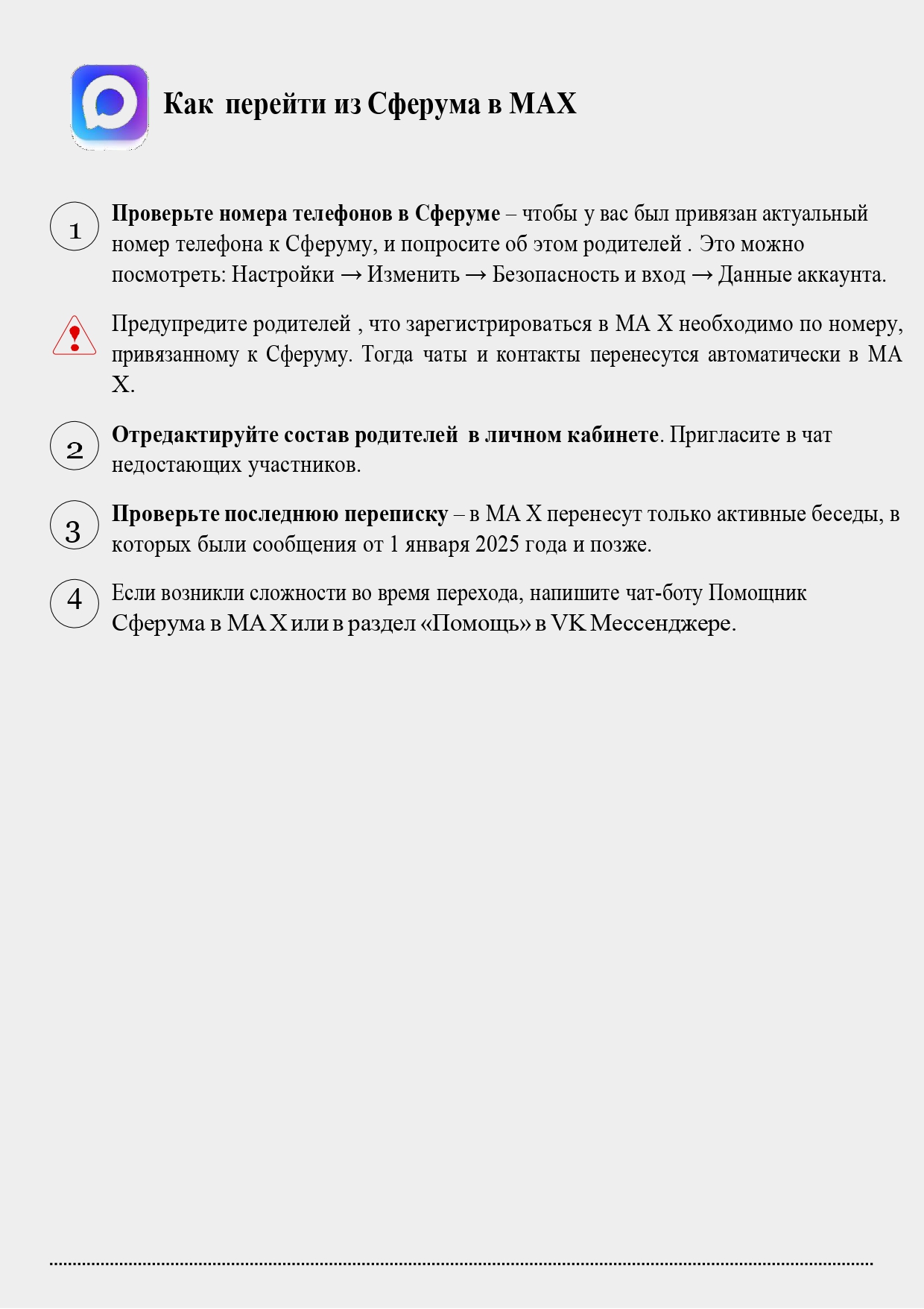 - Вам НЕ МОГУТ звонить с предложениями помощи по переходу на MAX.