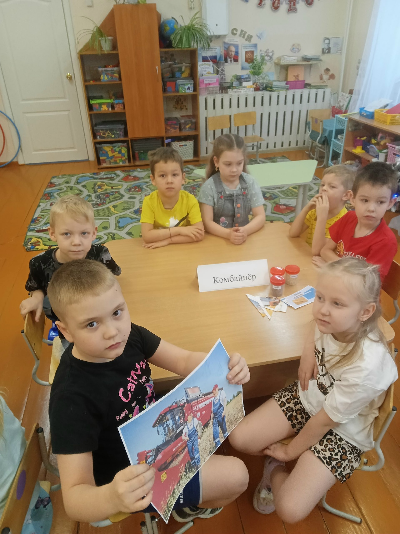 В рамках реализации проекта «Кем быть?» воспитанники подготовительной группы «Апельсинки», корпуса № 5, познакомились с профессиями в сельском хозяйстве, такими как: Агроном, Фермер, Комбайнёр через познавательную и игровую деятельность.