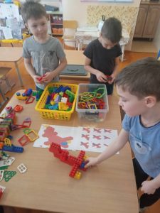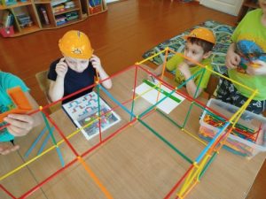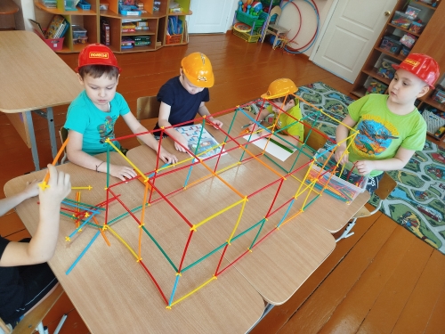 Наши ребята группы «Апельсинки» тоже побывали в роли инженеров –конструкторов в Конструкторском бюро. Работа велась подгруппами (малыми и большими), были коллективные работы и индивидуальные. Маленькие инженеры конструировали «Самолёт будущего», «Настенные часы», «Детский сад будущего», «Многоэтажный дом». Действуя в команде, дети развивали коммуникативные навыки. Создавая различные постройки по схемам, по замыслу или по условию, у детей развивалась память, внимание, логическое и аналитическое мышление, воображение, а также усидчивость, сосредоточенность, умение доводить начатое до конца.