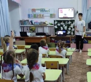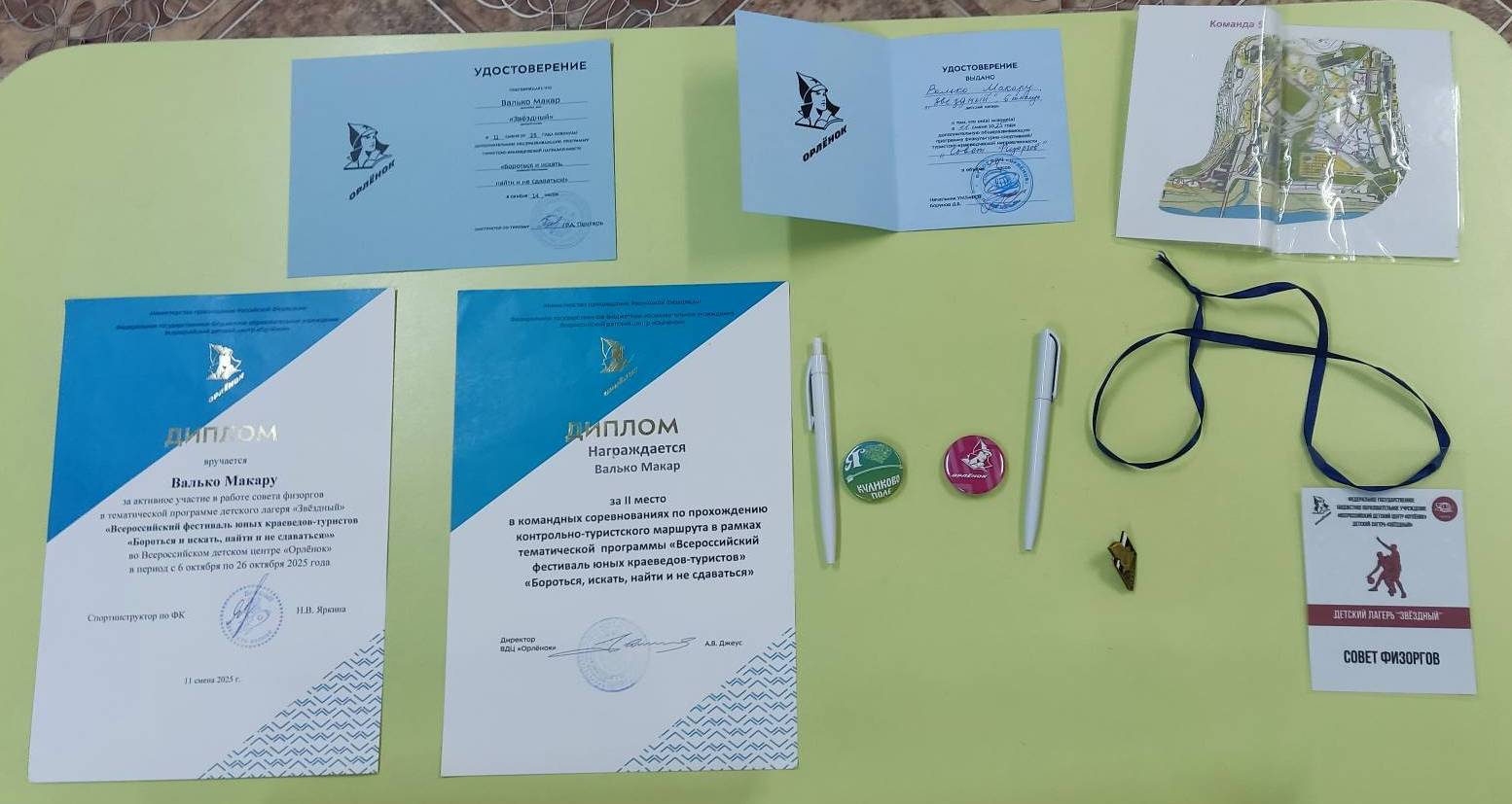 Рассказал, что он в этом году побывал во Всероссийском детском центре «Орлёнок» — это награда, за активность во всех орлятских делах.